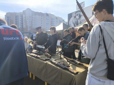 Гомельский областной музей военной славы принял участие в проведении Дня открытых дверей «Служу Отечеству». На площадке у Ледового дворца была развернута временная экспозиция образцов стрелкового оружия, военной амуниции и организована фотозона. Информационное сопровождение выставки осуществляли сотрудники музея. Горожане и гости города имели возможность сфотографироваться с музейными экспонатами.