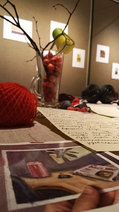 В камерном пространстве, напоминающем мастерскую, тактильные этюды-впечатления, архивные артефакты и дневниковые записи сплетаются в единую «кудéль» — первичный материал памяти и опыта. Красная нить, связующая прошлое с настоящим, более не линейна: она образует сложные переплетения, подобные нейронным связям или корневой системе.